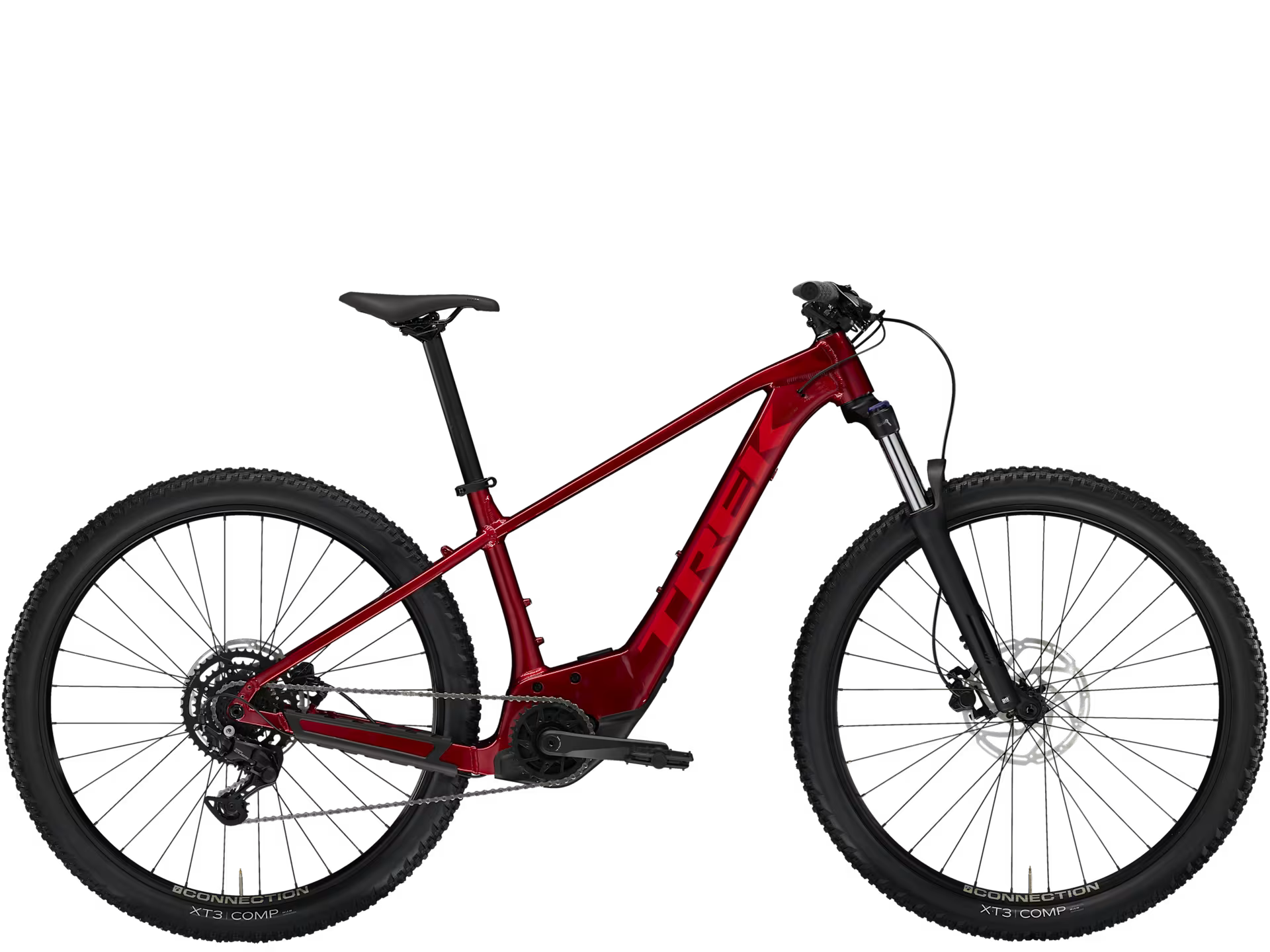 SR Suntour XCM 34, coil spring, preload, lockout. Travel : 100 mm (XS size) / 120 mm (S–XL sizes)