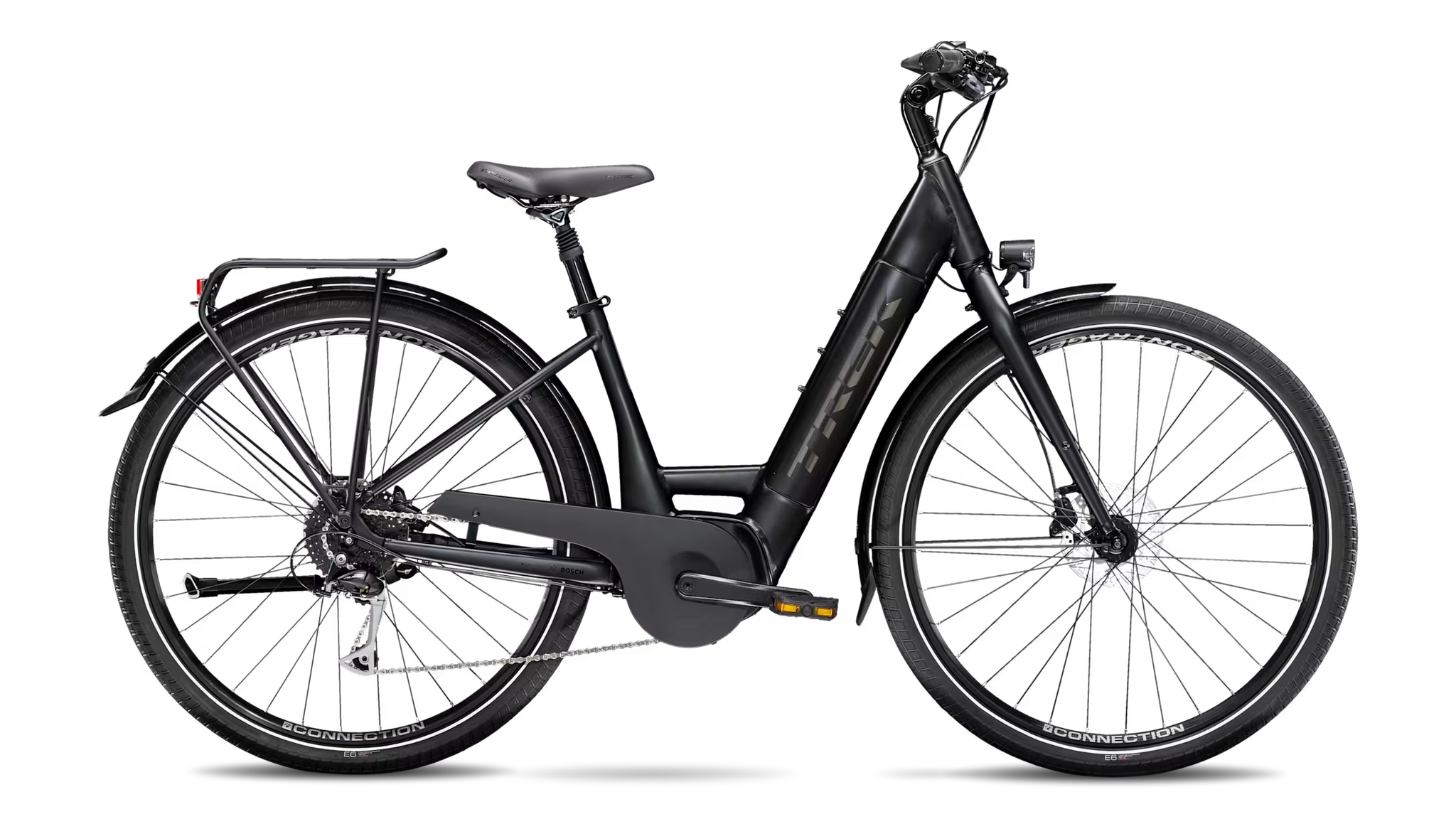 Un cadre ouvert en aluminium, une batterie Bosch Active Line Plus (250 watts, 50 Nm) capable d’offrir une assistance maximale de 32 km/h (25 km/h en Europe), une batterie Bosch PowerTube 500Wh complètement encastrée dans le cadre et un dispositif de commande Bosch Purion. Sans oublier une transmission Shimano à 9 vitesses, des freins à disque hydrauliques Shimano pour une puissance de freinage garantie par tous les temps, une tige de selle suspendue, de larges pneus anti-crevaison pour davantage de stabilité, des poignées ergonomiques, une béquille, un phare avant et un feu arrière, un porte-bagages MIK et des garde-boue.